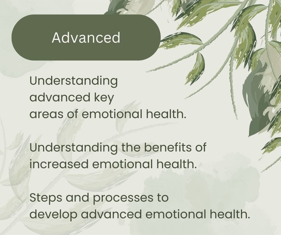 Understanding all areas, including the benefits of emotional health, what prevents emotional health, identifying triggers and healthy responses.